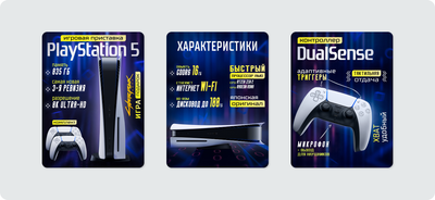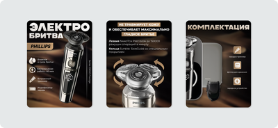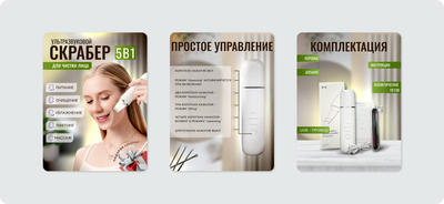 2 карточки товаров, 2 дизайн-воронки, 2 анимированные карточки и 2 rich-контента в портфолио