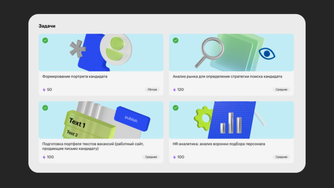 Будете получать задачи от реальных компаний и отрабатывать на них новые навыки. Компанию и уровень сложности можно будет выбирать на свой вкус